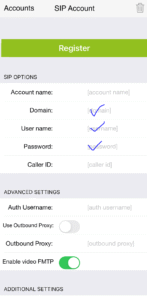 8.填写fake call zoiper软件三要素后,点击Register等待一会,如果显示绿色✔就ok,就可以再点下左上角的Accouts返回拨号界面。